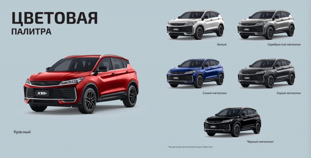 Даже в начальной комплектации X50+ предлагает набор опций, достаточный для повседневной эксплуатации. В список входят: