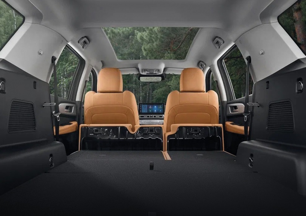 Багажный отсек в стандартной конфигурации, с тремя рядами кресел — 595 л. Сложите третий ряд — и у вас будет уже 1302 л. А если сложить и второй — целых 2400 л, считайте, минивэн, притворяющийся кроссовером!