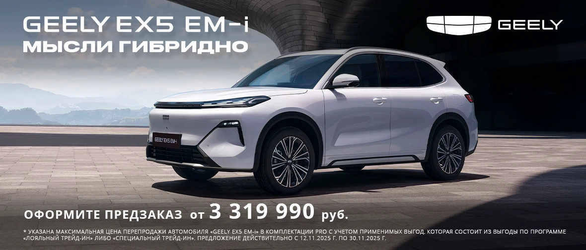 Компания Geely представляет долгожданную новинку — кроссовер EX5 EM-i, который объединил в себе преимущества электромобиля и надежность гибридной силовой установки. И первый автомобиль уже доступен для заказа и тест-драйва в дилерском центре Geely Favorit Motors!